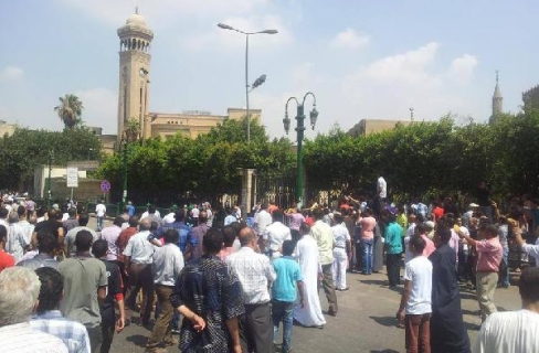 تقوم مجموعات من البلطجية بحصار جميع أبواب الجامع الأزهر لمنع مئات المتظاهرين المؤيدين للشرعية من الخروج في مسيرات "مليونية النصر" منذ انتهاء صلاة الجمعة.